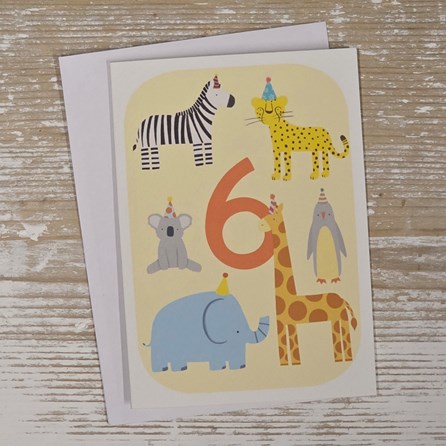 Children's 6th Birthday Party Animals Card