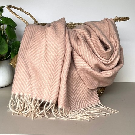 Perfect for accessorising your latest outfit, this incredibly soft and elegant cashmere scarf in pink has a herringbone design and tassels.