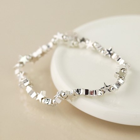This lovely silver plated polished stars bead bracelet is perfect to wear on any occasion, and will complement any outfit.