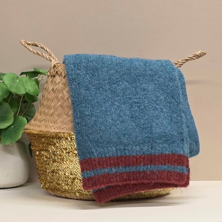 Keep out the chill and wrap up warm with this cosy wool blend scarf in teal and burgundy.